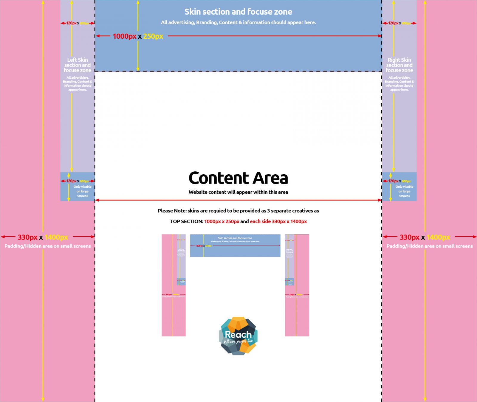 Combined max file size 300kb (100kb per creative, if Reach hosted) |